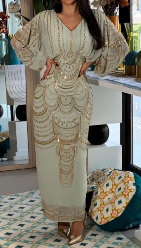 يُعتبر الفستان بقصتة العصرية الانيقة وهوا من التصاميم الرائجة والمثيرة للأنظار. إليك وصفًا مبسطا لفستان المودرن الفخم و الانيق